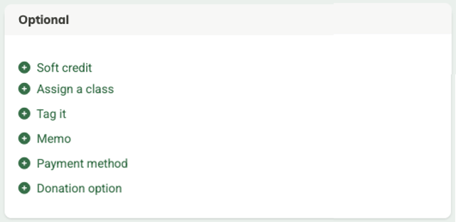 After you've entered the required details for a donation, you'll find a group of optional settings at the bottom of the form.
