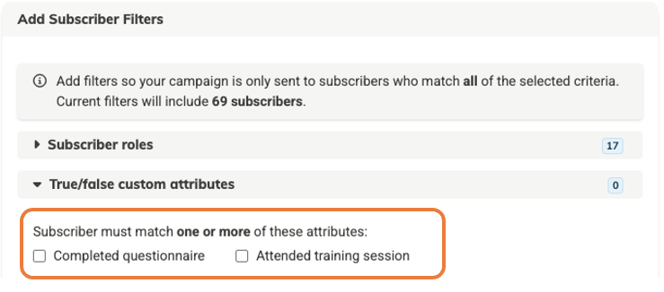 Using the available subscriber filters, define the segment of the list that you'd like to target with this campaign.